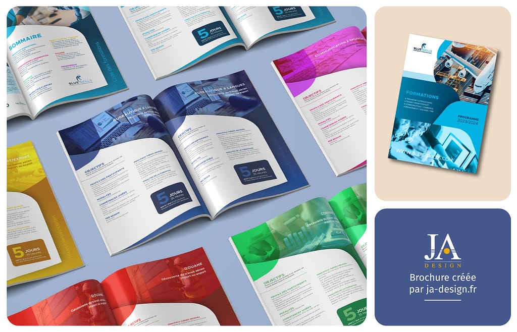 Découvrez une sélection de supports imprimés réalisés par JA Design, graphiste freelance à Bordeaux. Cette galerie présente différents projets d’édition et de communication visuelle : brochures, catalogues, plaquettes commerciales, flyers et documents d’entreprise.