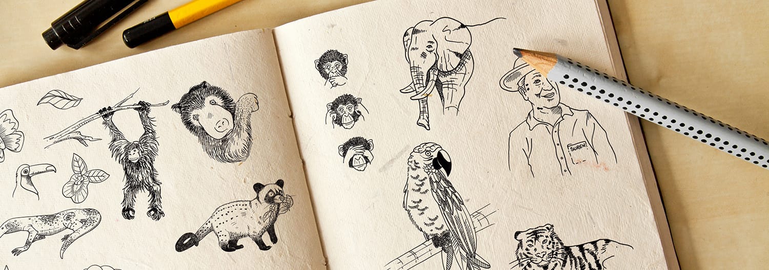 Croquis et illustrations pour la création d'une étiquette de bouteille